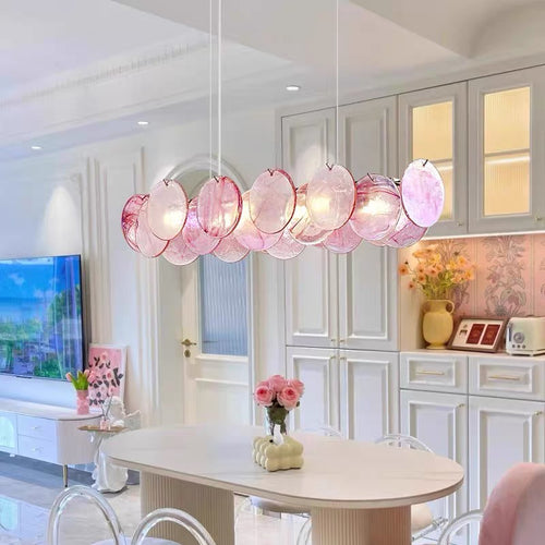 • Chandelier Romantic Murano Glass Disc, Pink / Green